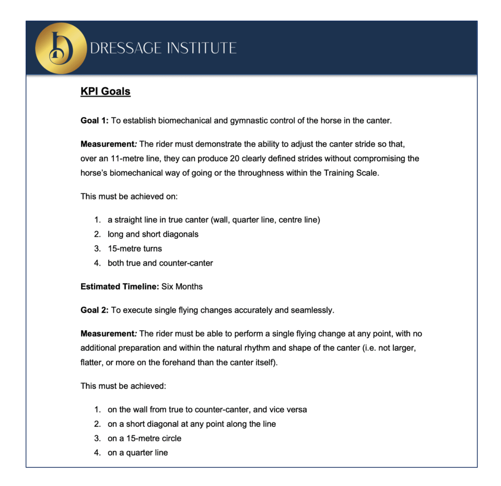 The Dressage Institute is a online, competency-based learning system that builds independent, confident riders.